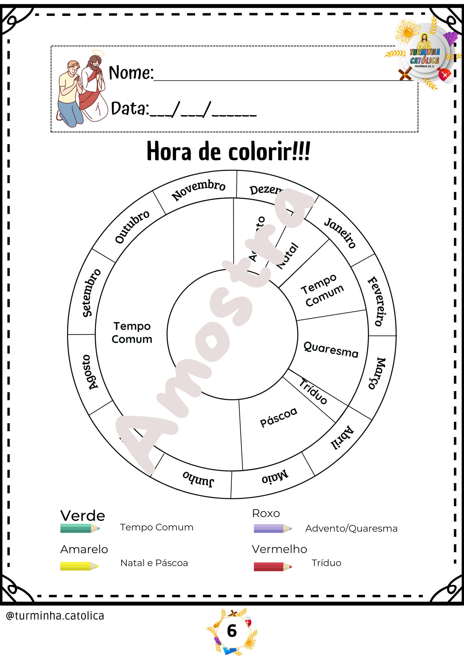 Use o material com as crianças para ensinar o Ano Litúrgico de forma prática, lúdica e organizada.