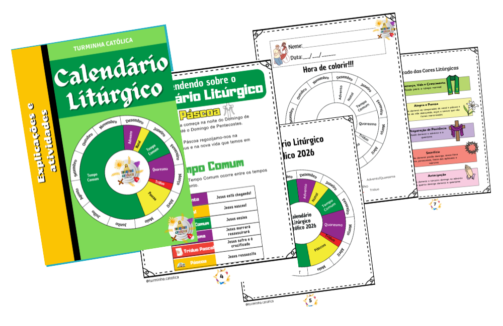 Tenha em mãos atividades criativas e envolventes, totalmente alinhadas ao que a Igreja vive mês a mês. Calendário Atualizado 2026 + Atividades para cada tempo.