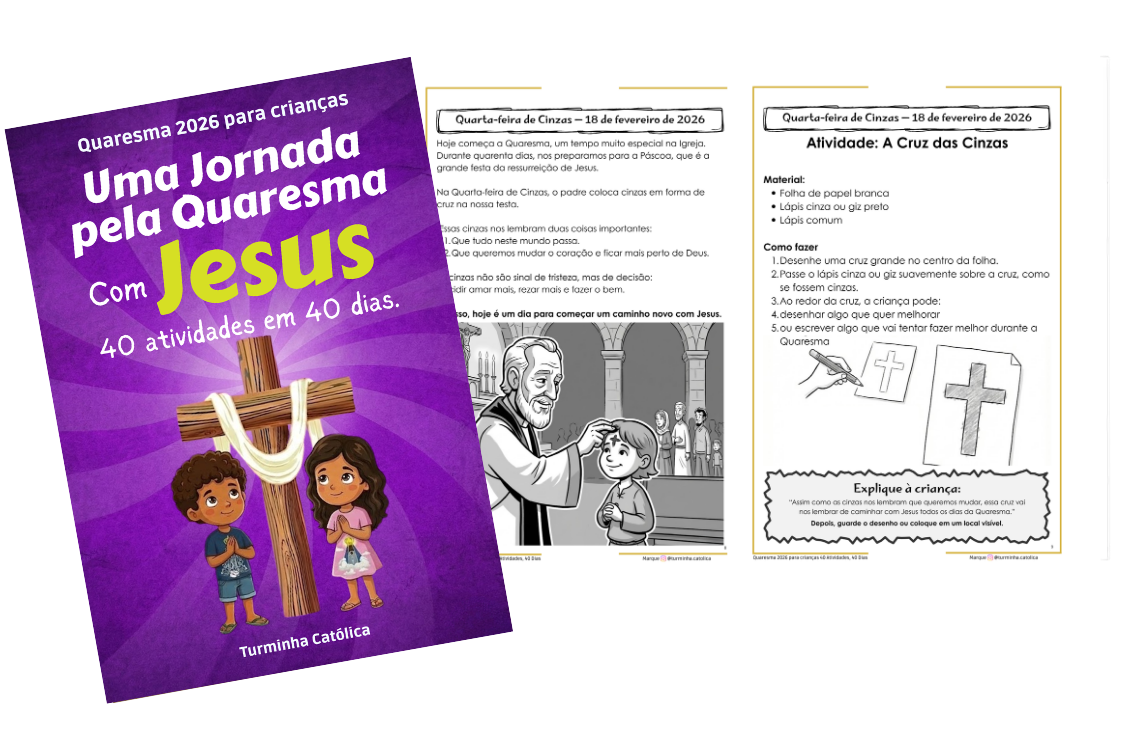 Um material simples, profundo e completo para ajudar mães a conduzirem seus filhos durante a Quaresma, com uma atividade por dia.